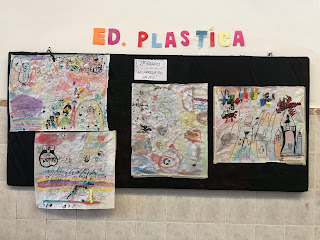 Trabajos realizados con acuarela y marcador por los alumnos de 2do grado.